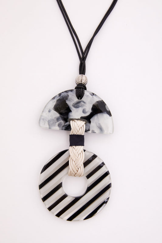 Naya Black/Cream Stripped Disc Necklace