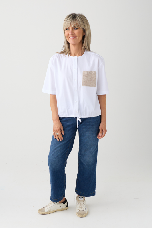 Margittes White/Taupe Pocket Blouse