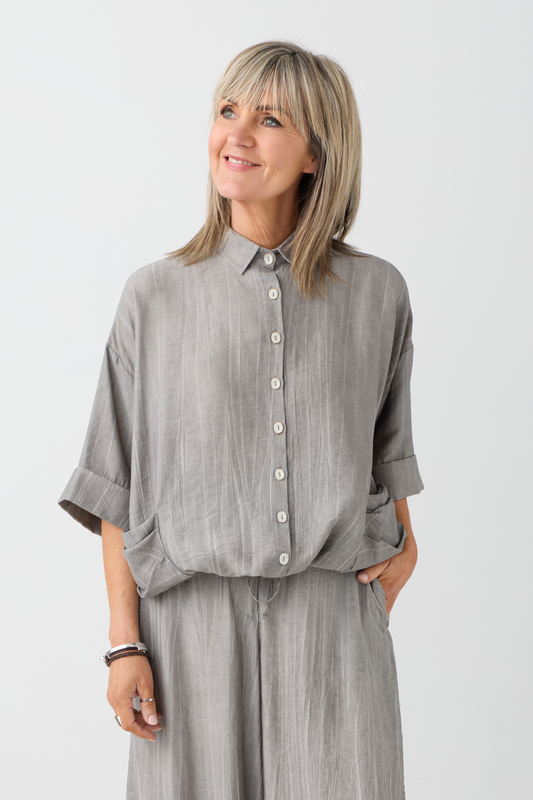 Ozai n Ku Taupe Crinkle Oversized Shirt