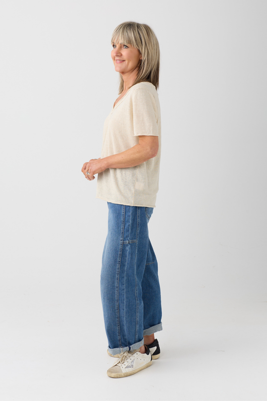 el2 Cream V-Neck Knit T-Shirt 1075