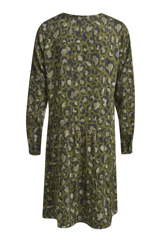 Milano Khaki Print V-Neck Dress