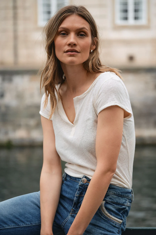Mos Mosh Arden White V-Neck T-Shirt