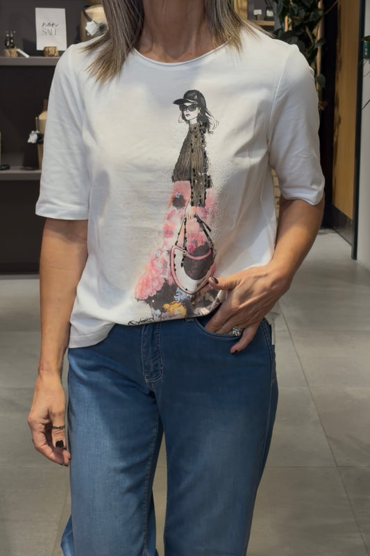 Oui Cloud Dancer Lady Print T-Shirt