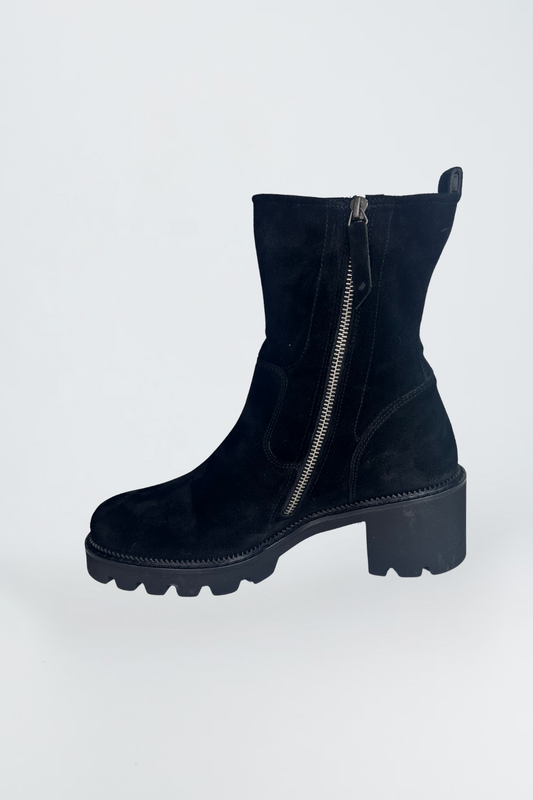 Paul Green Black Nubuk/Grained Zip Back Boot