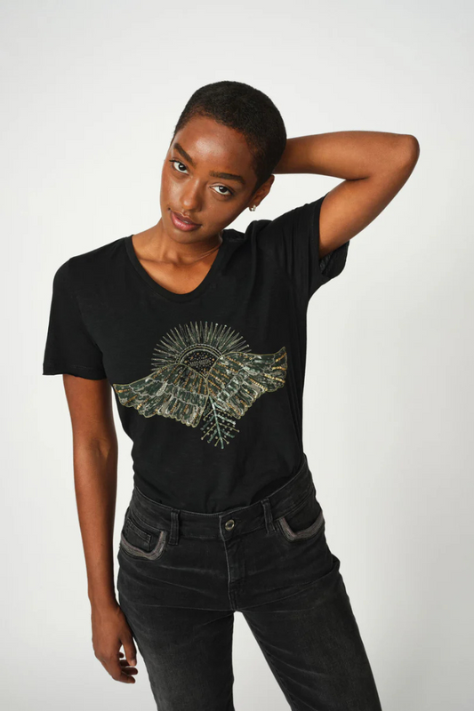 Mos Mosh Zora Black V-Neck Bead Jumper