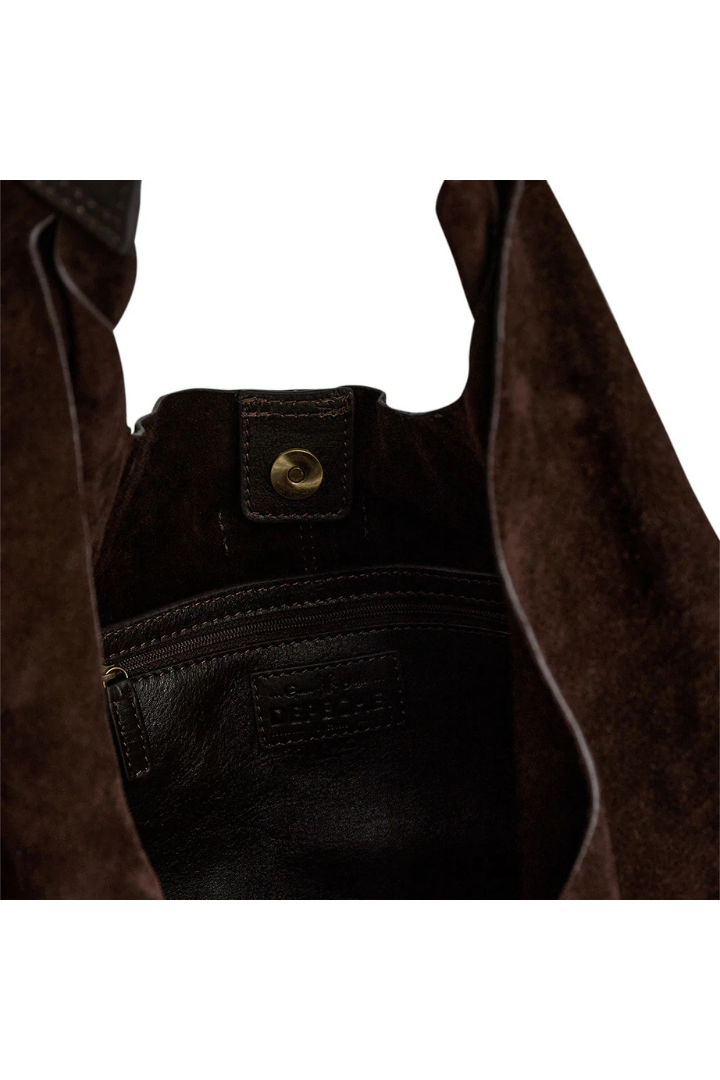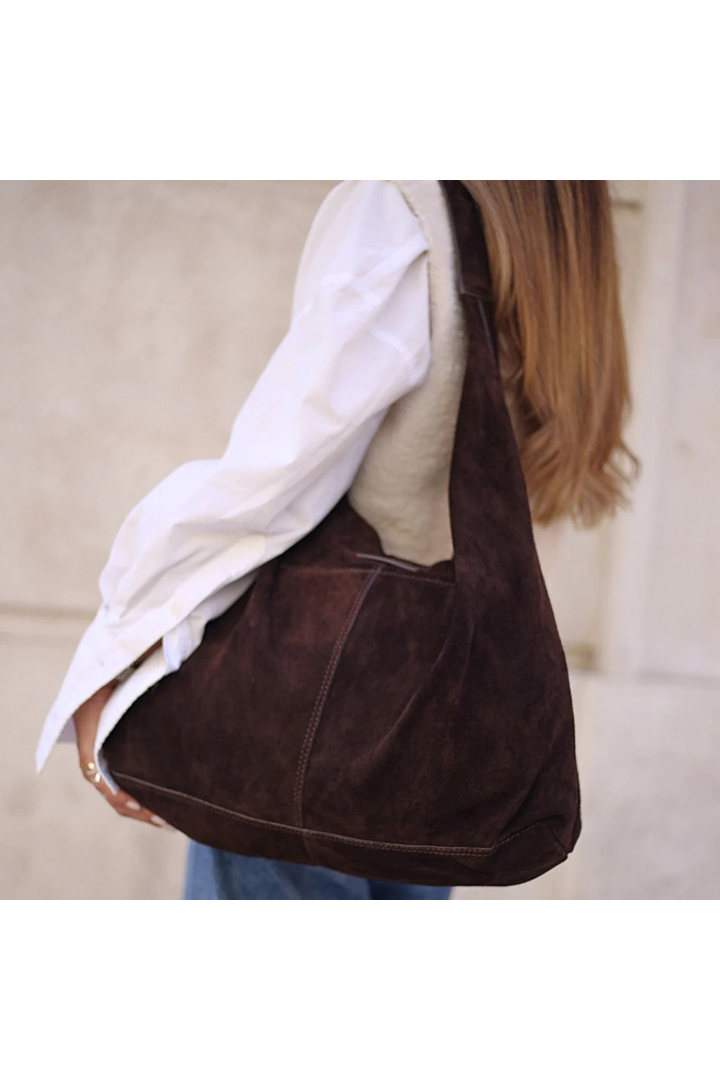 The soft suede gives the bag a beautiful drape and an elegant slouch that hugs the body naturally.