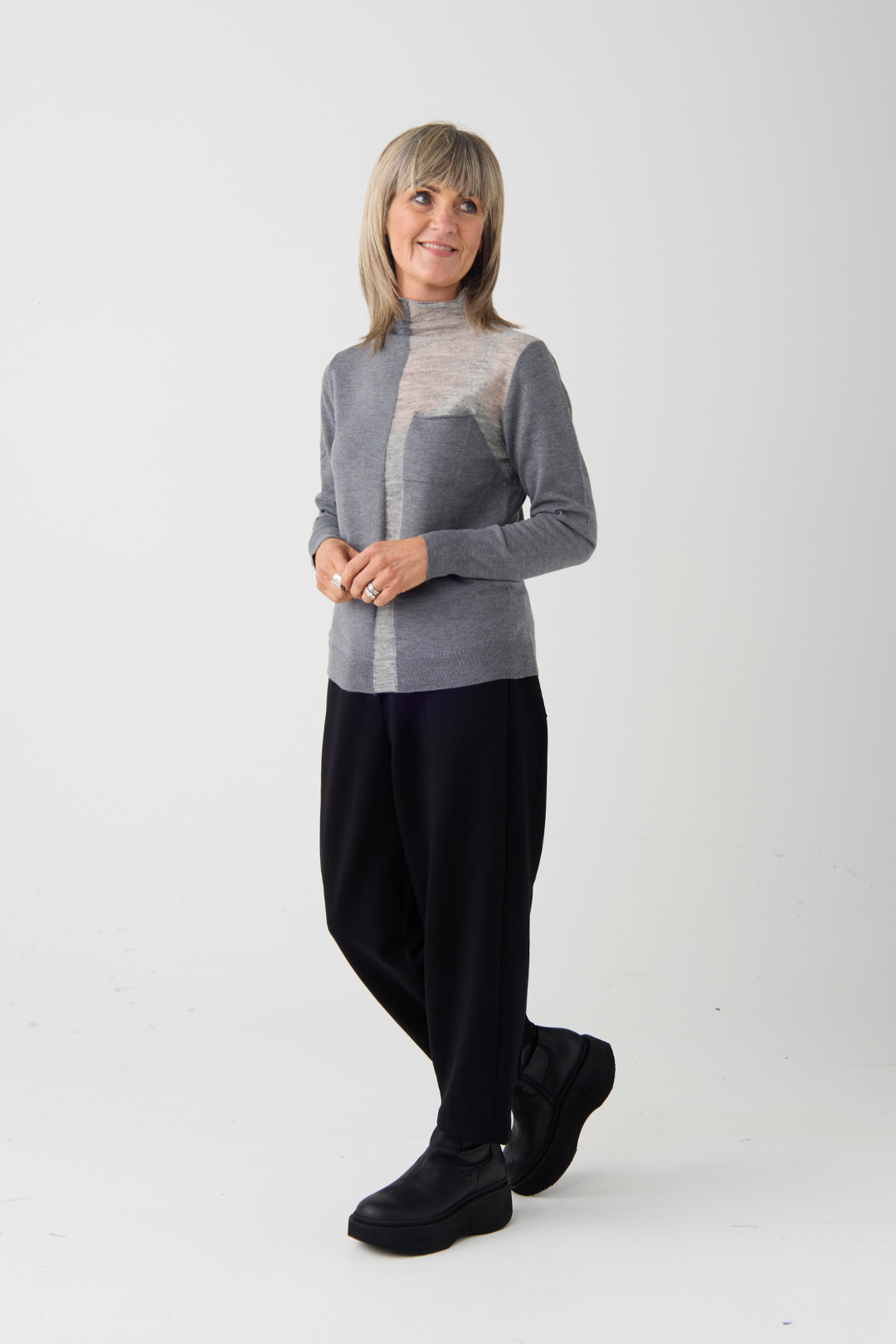 el2 Grey Contrast Panel LS Knit w/Pocket