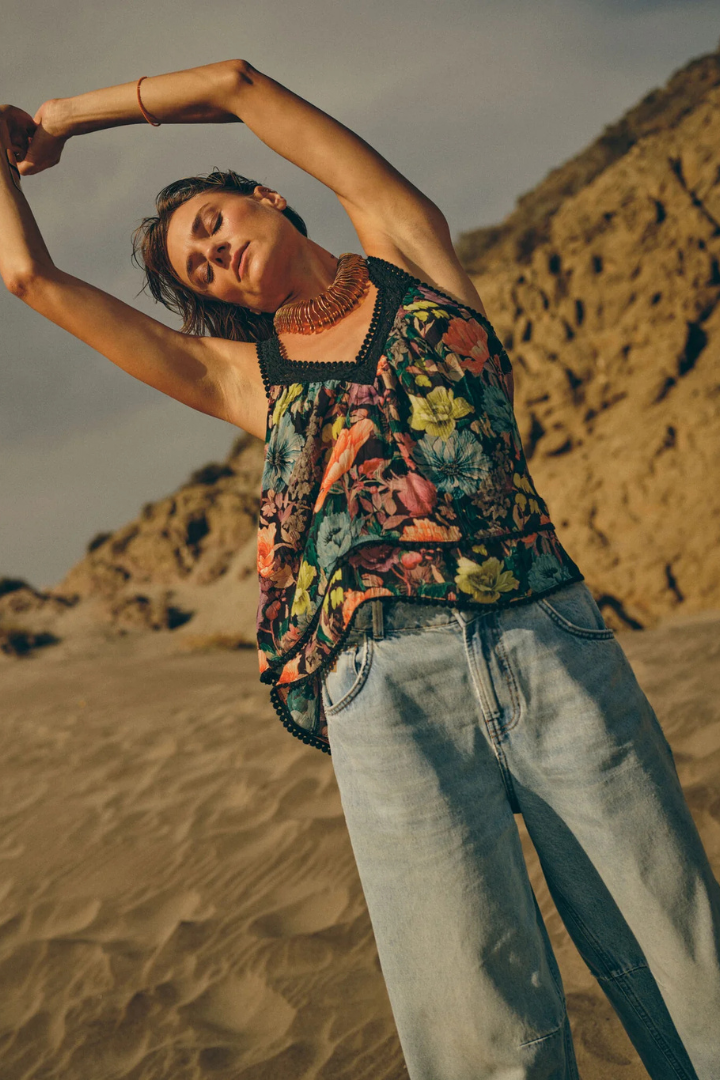 This sleeveless top comes in a relaxed fit with a soft V-neck and breezy floral pattern. Easy to wear and style with anything from denim to tailored pieces.