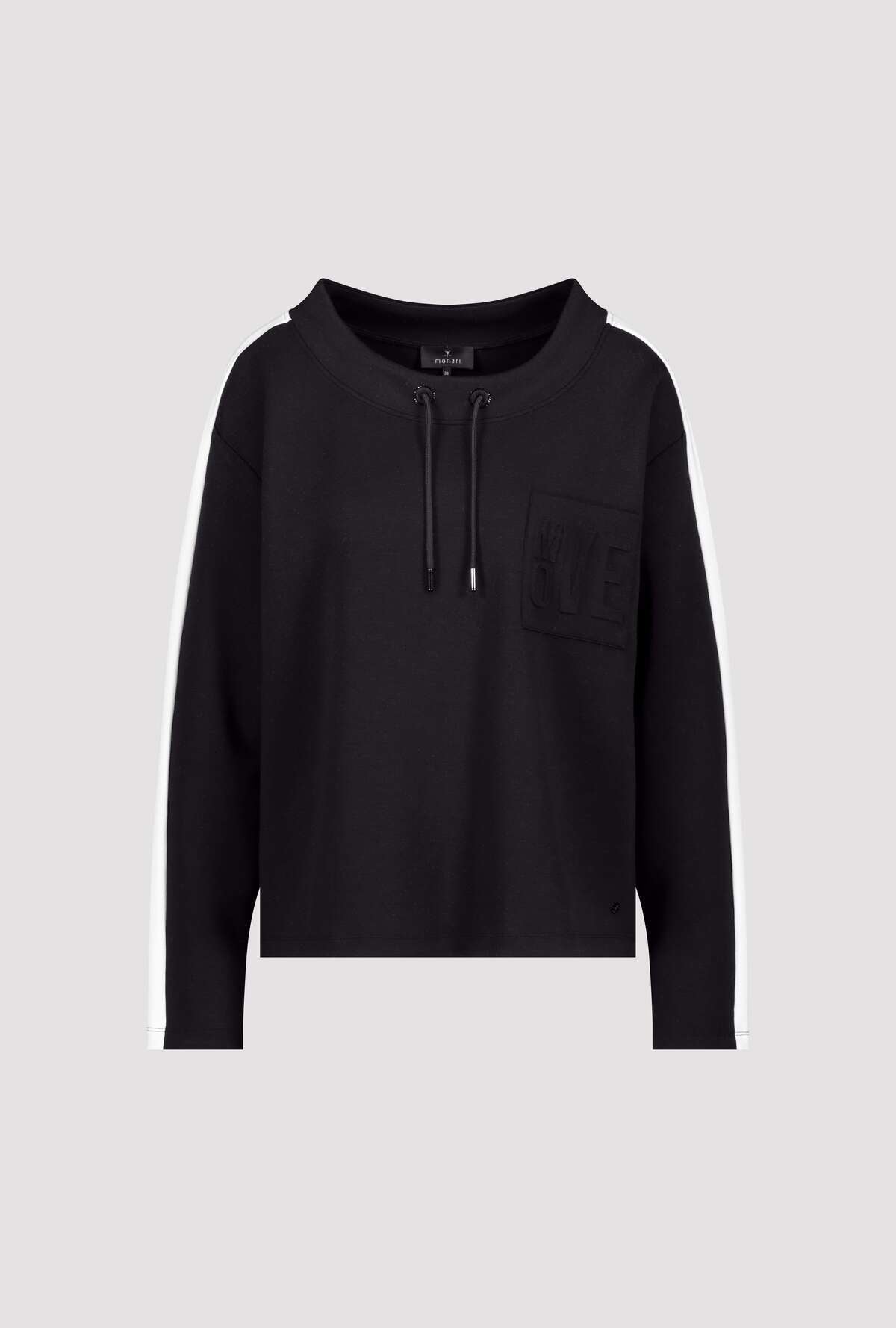 Elegant long-sleeve sweatshirt made of stretchy modal with 3D details, striped sleeves, and a shimmering stand-up collar for a stylish appearance.