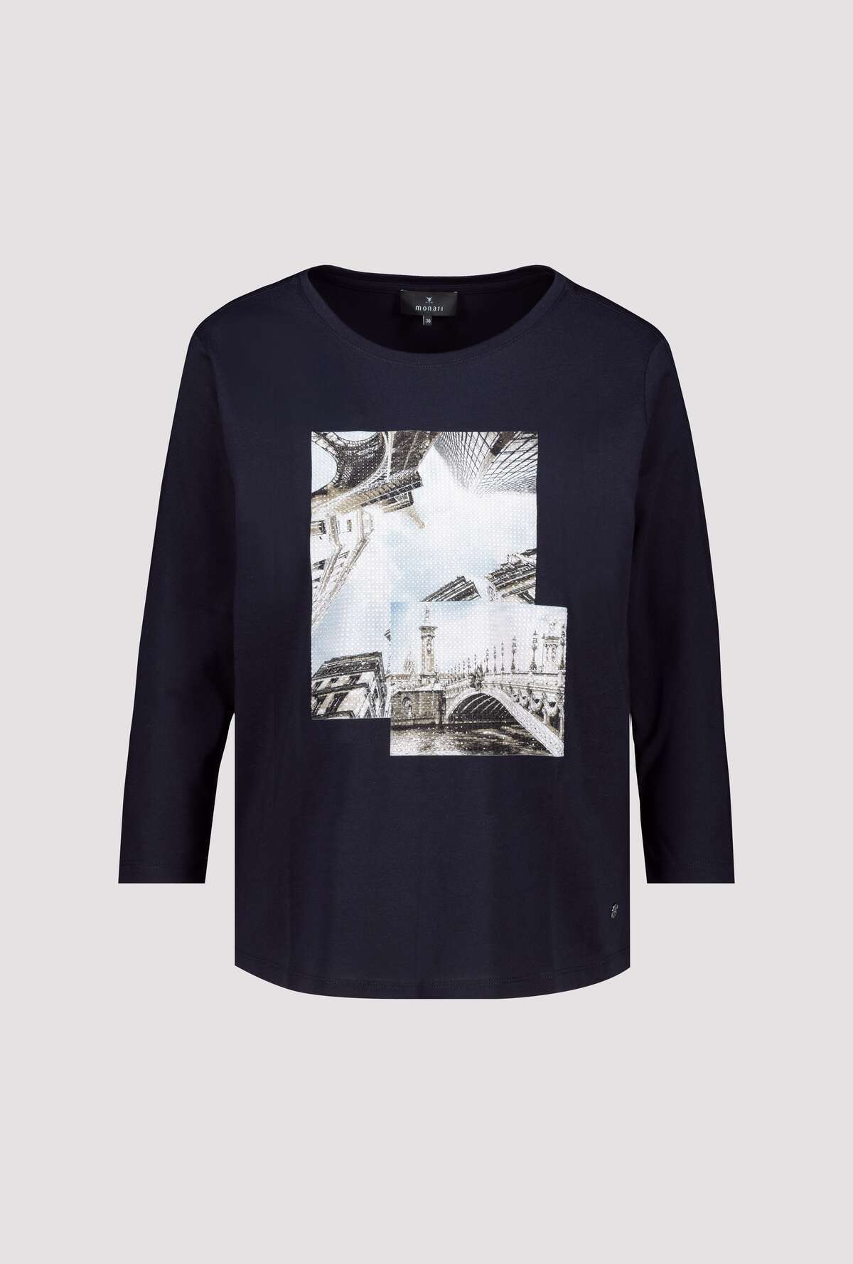 Elegant shirt made from fine cotton with modal, with an enchanting Paris print and glittering rhinestones. Ideal regular fit with rounded hems.