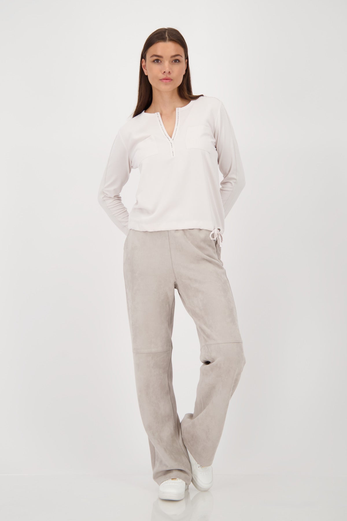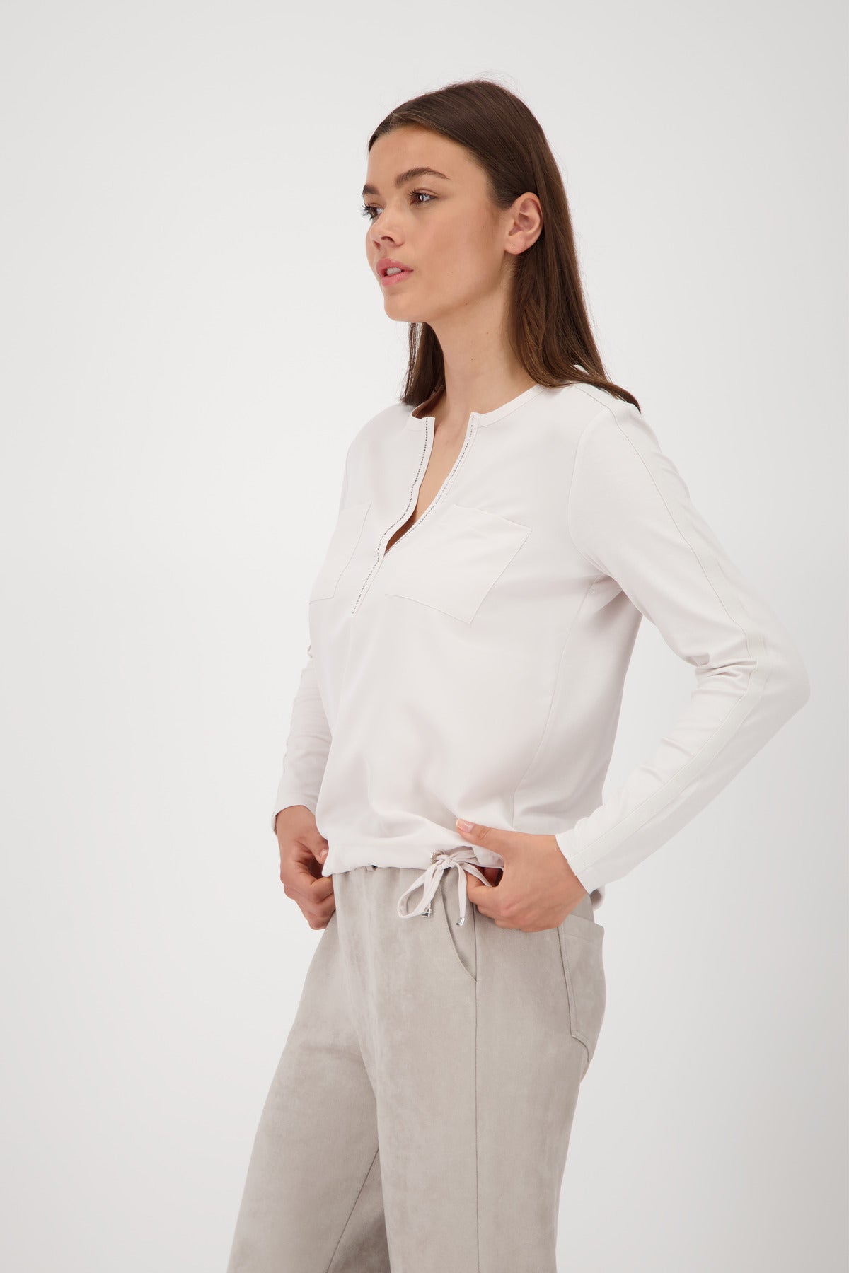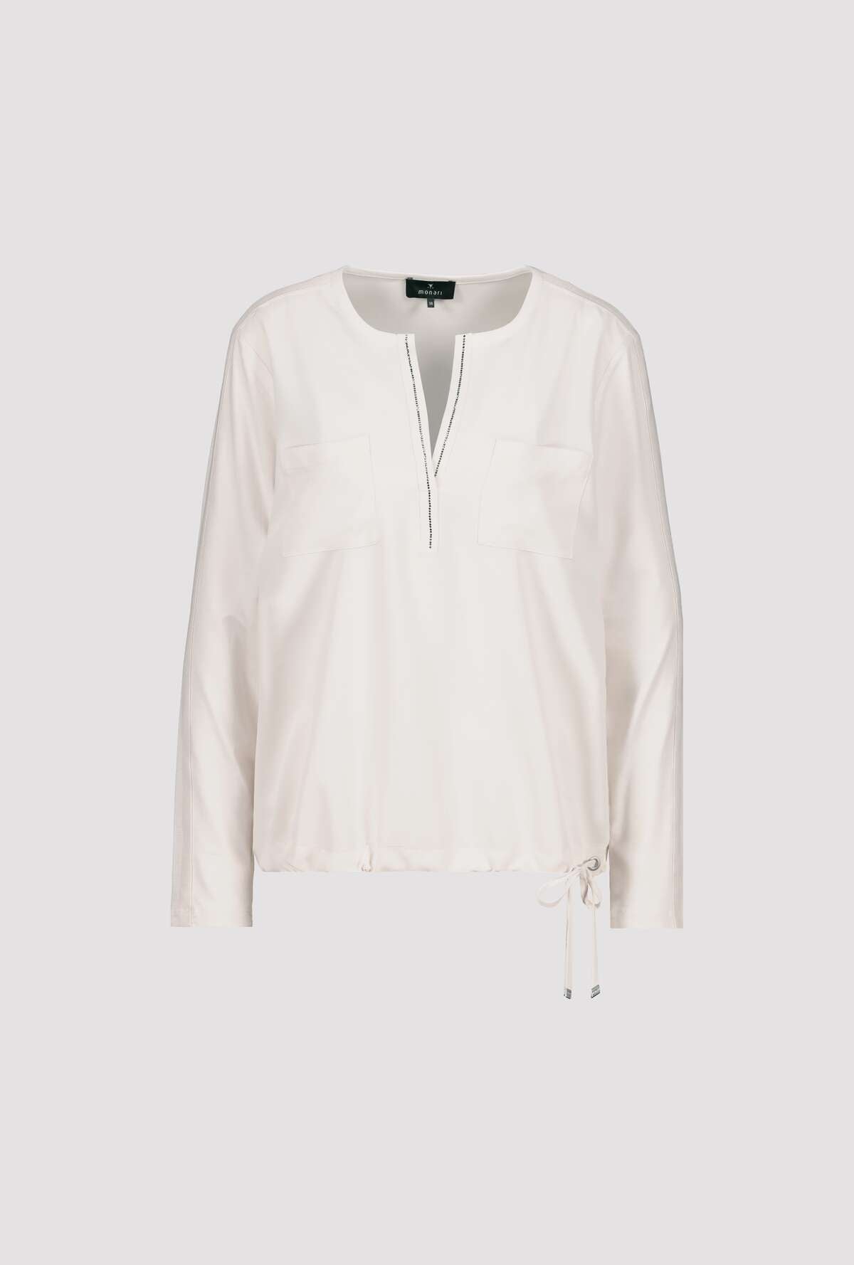 This blouse made from flowing viscose combines a sophisticated satin look at the front with stretchy comfort. The round neck with a slit and sparkling rhinestones adds an elegant touch to the regular fit. Attached breast pockets, a stripe along the sleeves and the drawstring at the hem add stylish accents – perfect for feminine looks with a special detail.