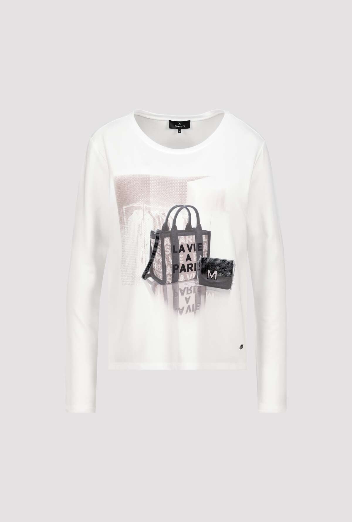 Chic shirt made from elasticated viscose with modal. Round neck, long sleeves, pocket print and sparkling rhinestones for a stylish look.