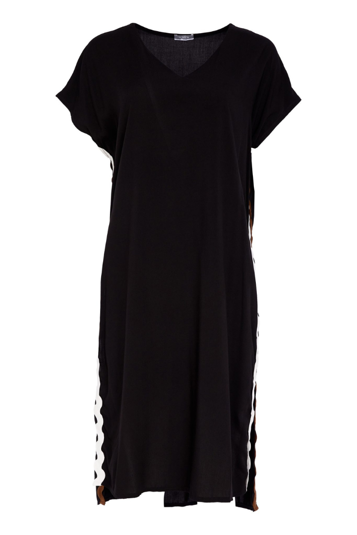 Naya Black/Choc Ribbon Trim Tunic Top