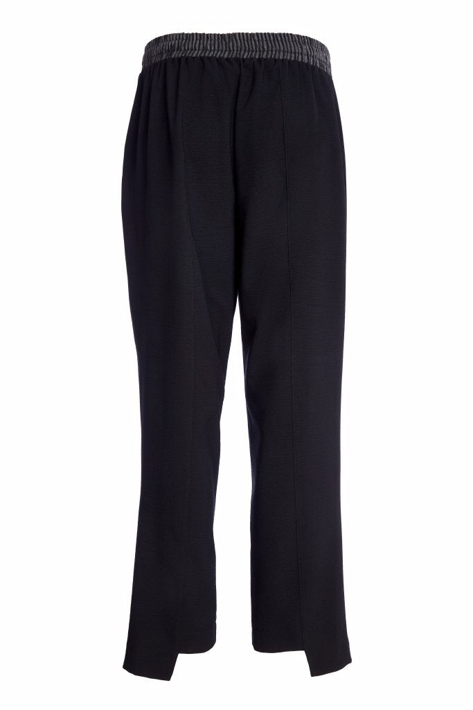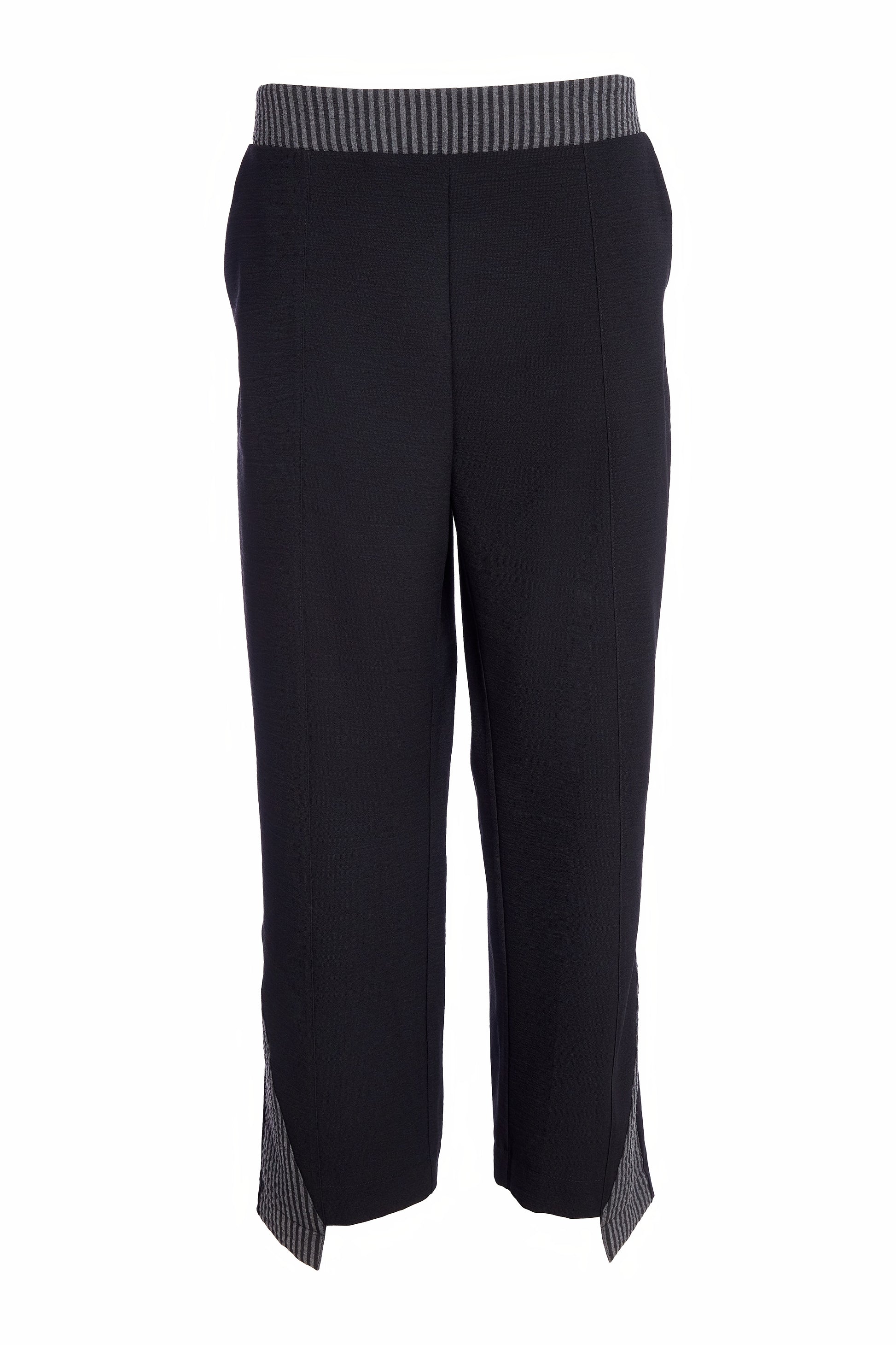 INSTANT POLISH; The NAYA wide leg trousers in soft jersey are elevated by a sports luxe feel added to the waistband and a cutaway panel that teases at the hem. Perfect for those that like a mix of comfort and drama in their everyday lives.