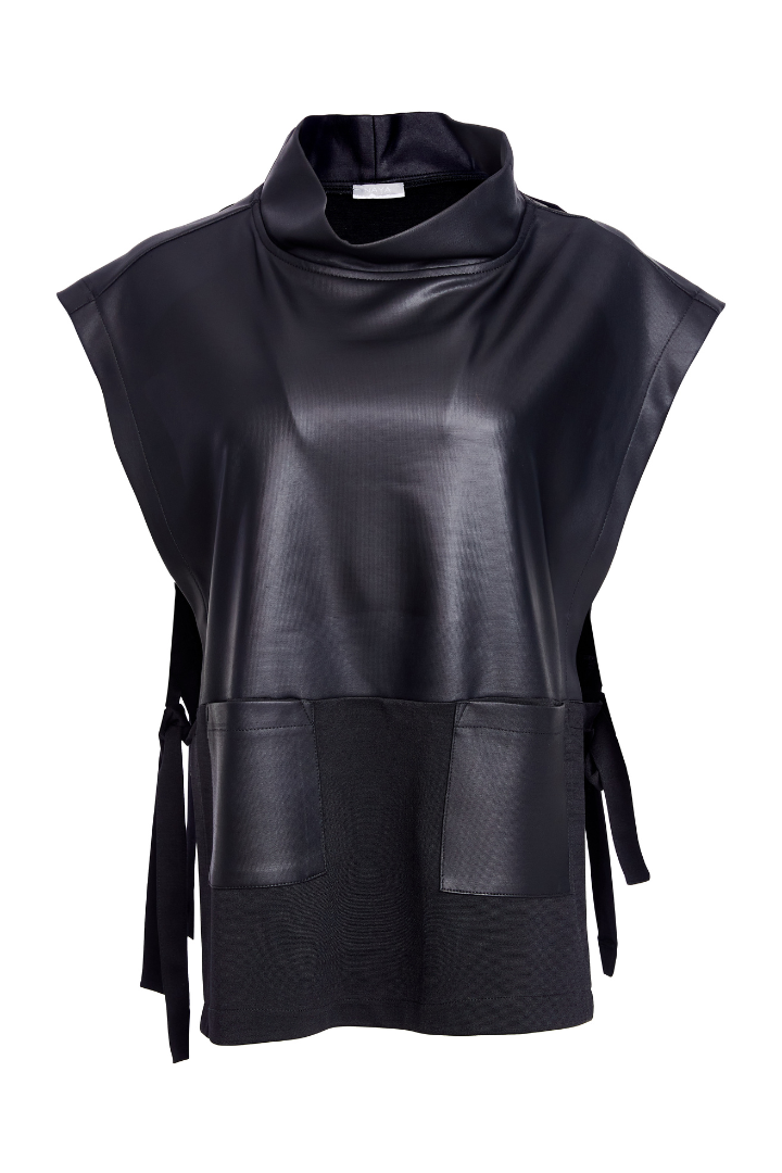 SLEEK STYLING; NAYA reinvent faux leather this season and deliver a beautiful high collar, open side top designed to elevate the most basic of looks. Wear it over dresses, tops or shirts, the choice is endless.
