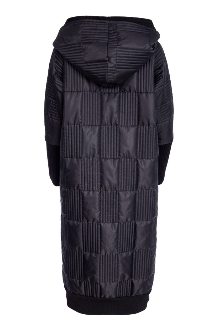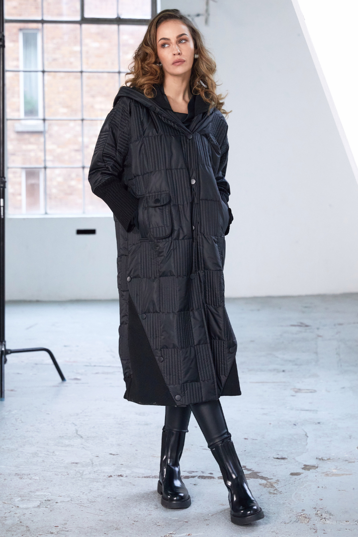 SAVVY INVESTMENT: Look to the NAYA padded coat with a hood for a quality buy this season. In elegant black the padded texture is boosted by the deep ribbed cuffs, ribbed collar and colour drenched buttons.