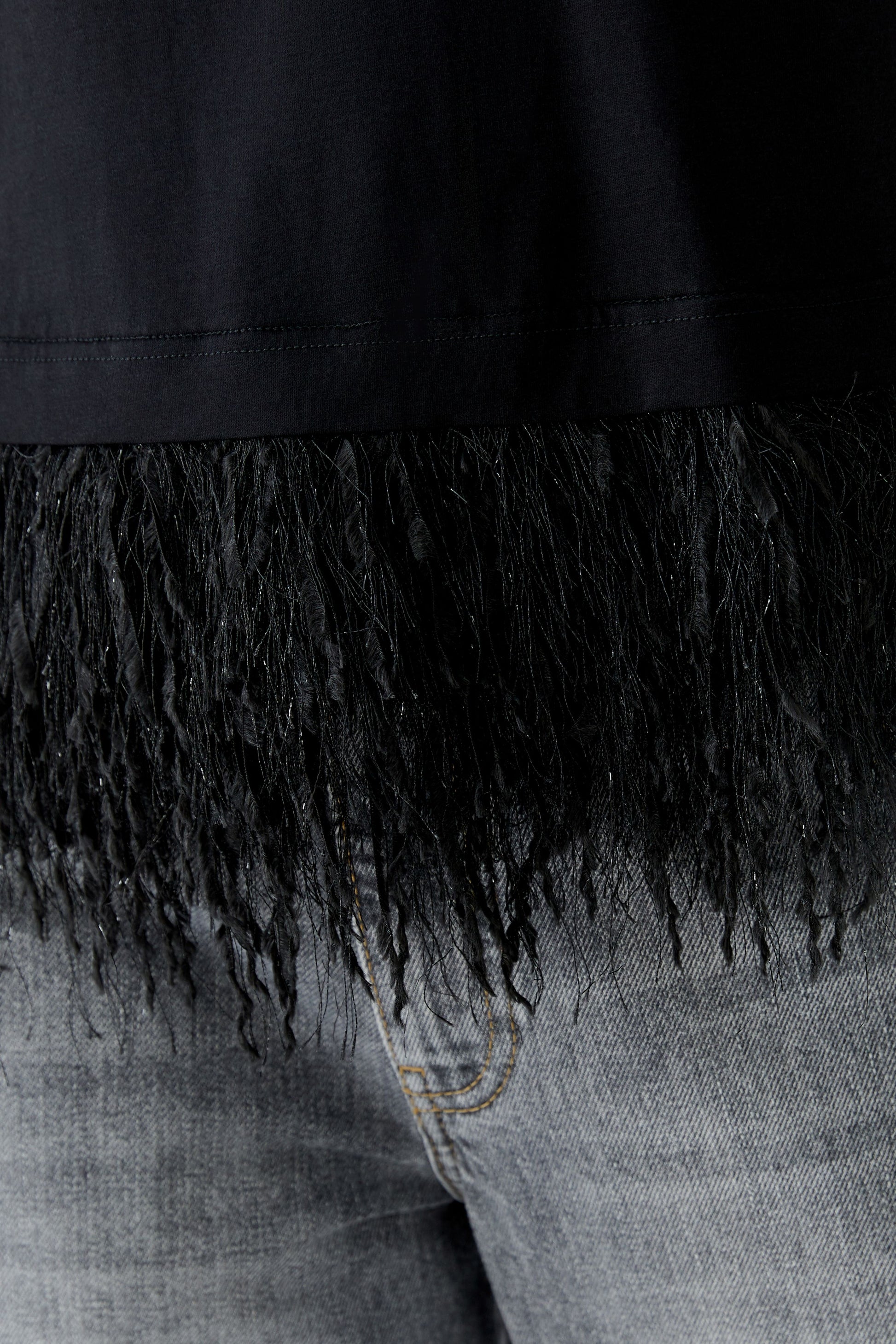 Highlight T-shirt with extravagant hem: Fringe fabric with fine glitter yarn