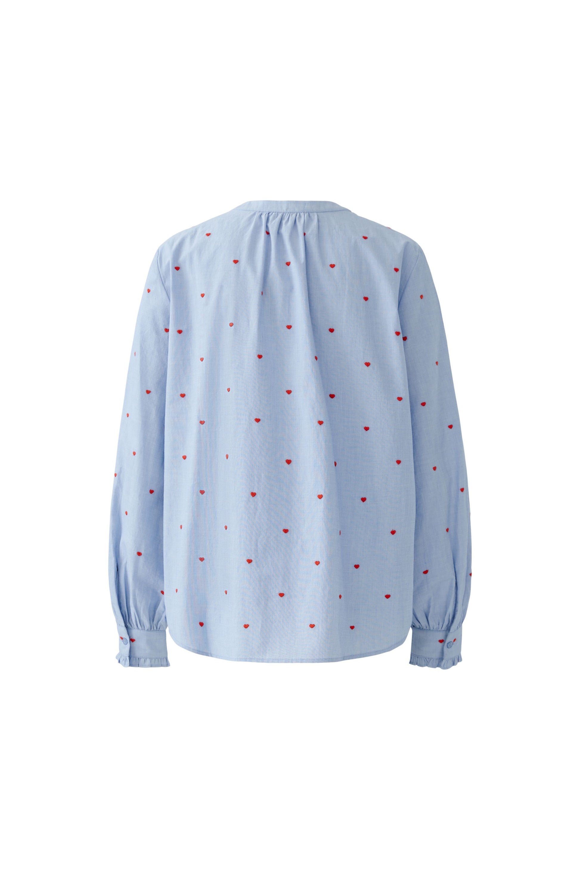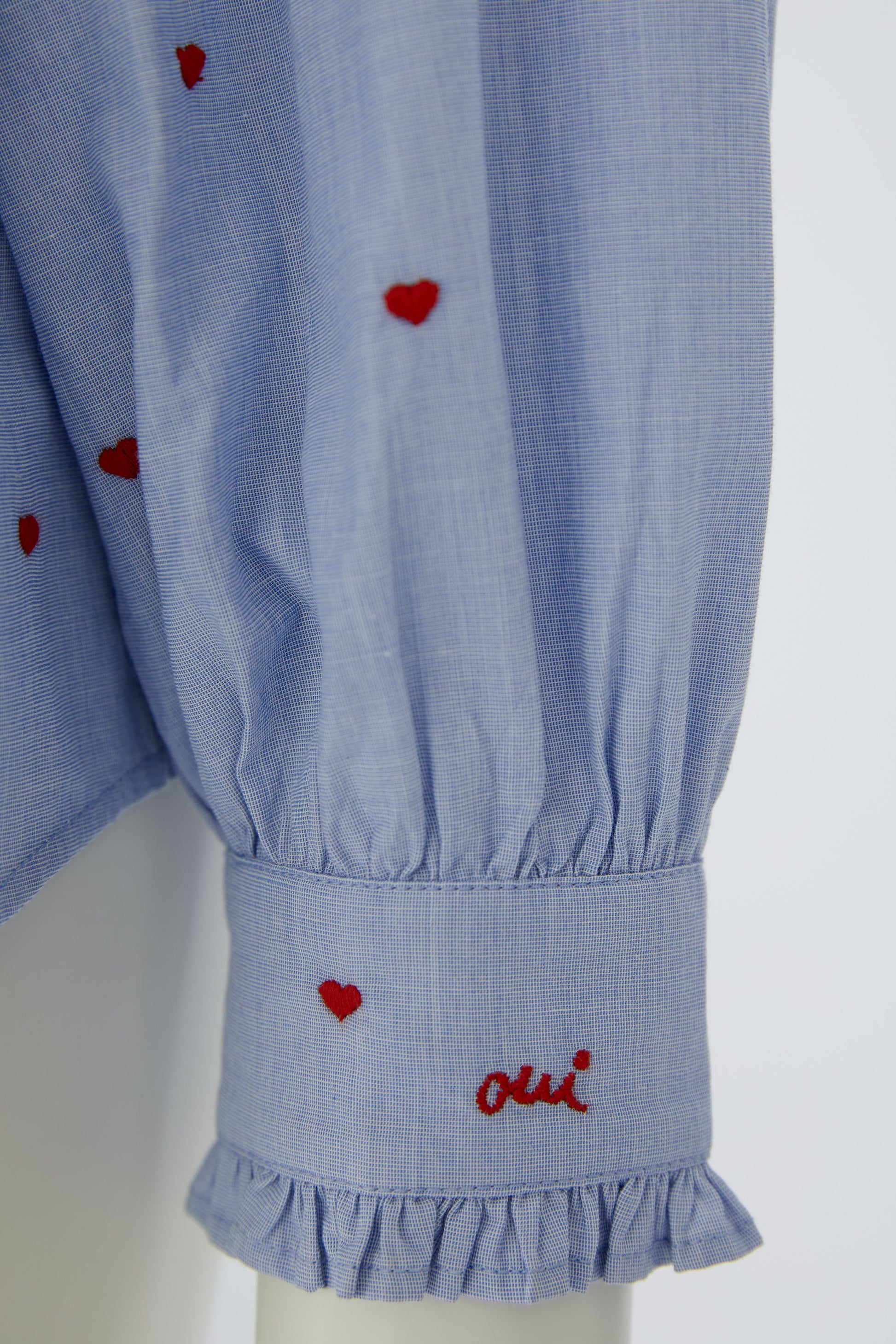 - Long, set-in sleeve with cuff and button fastening with ruffle edge