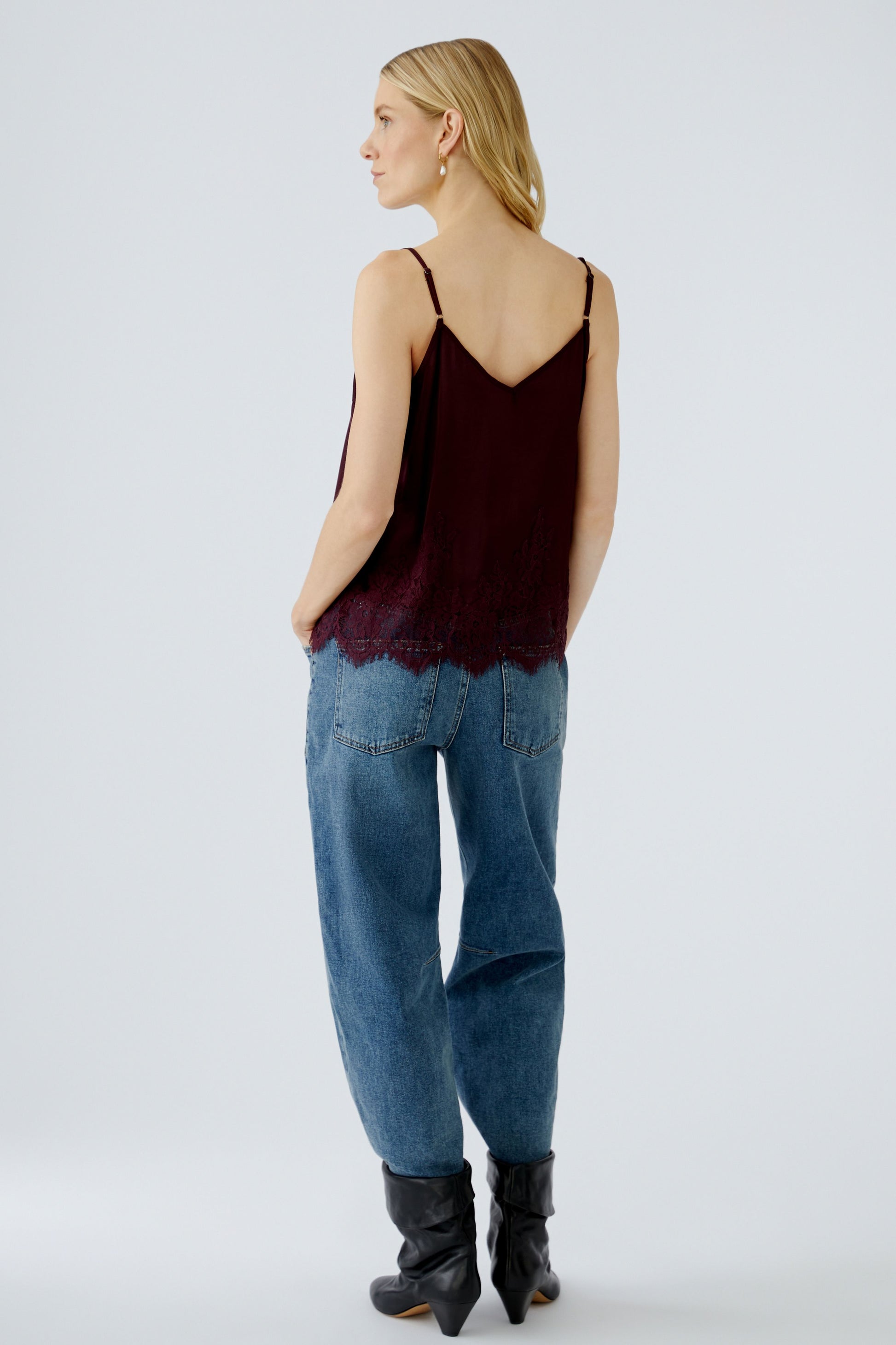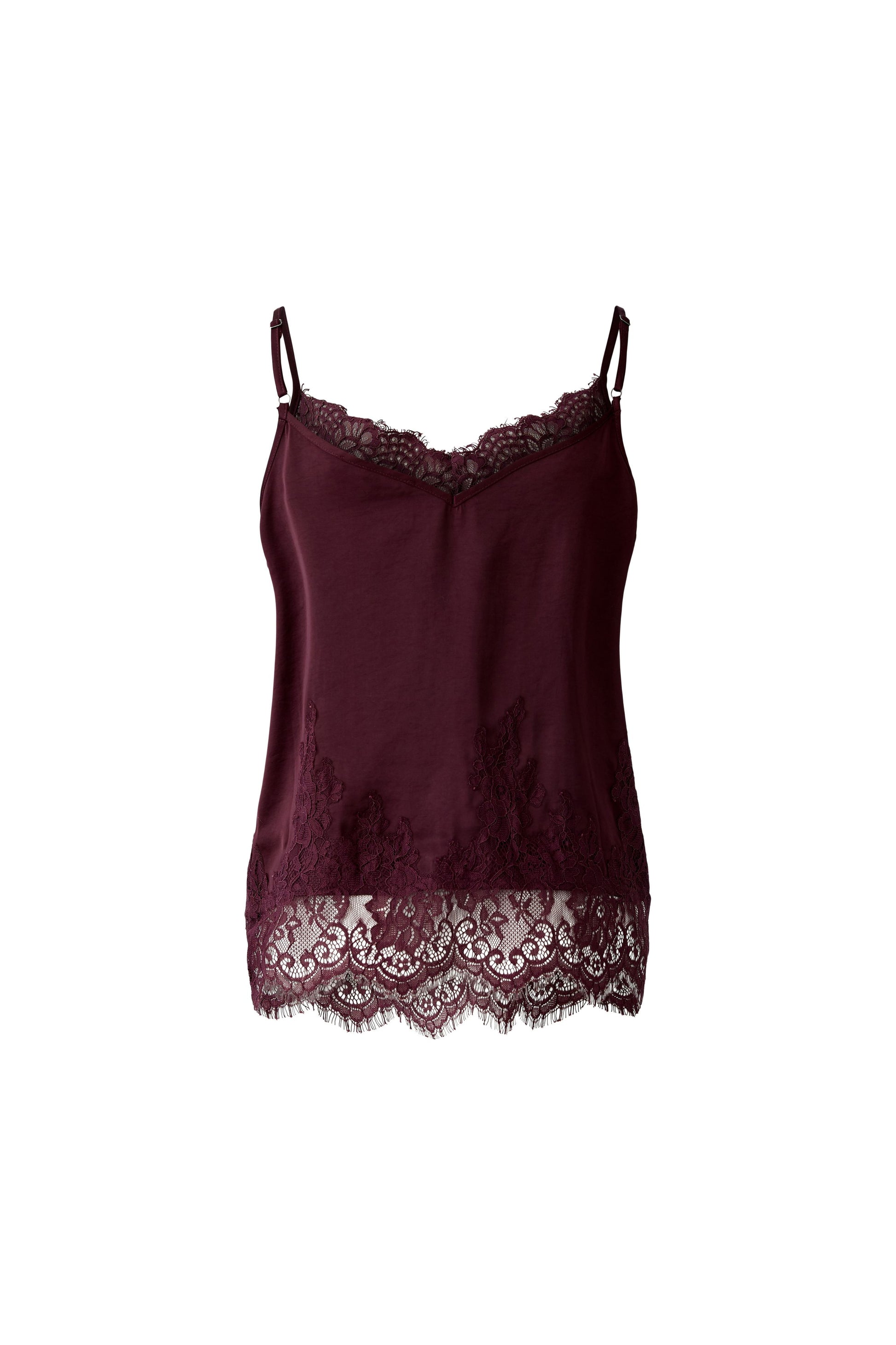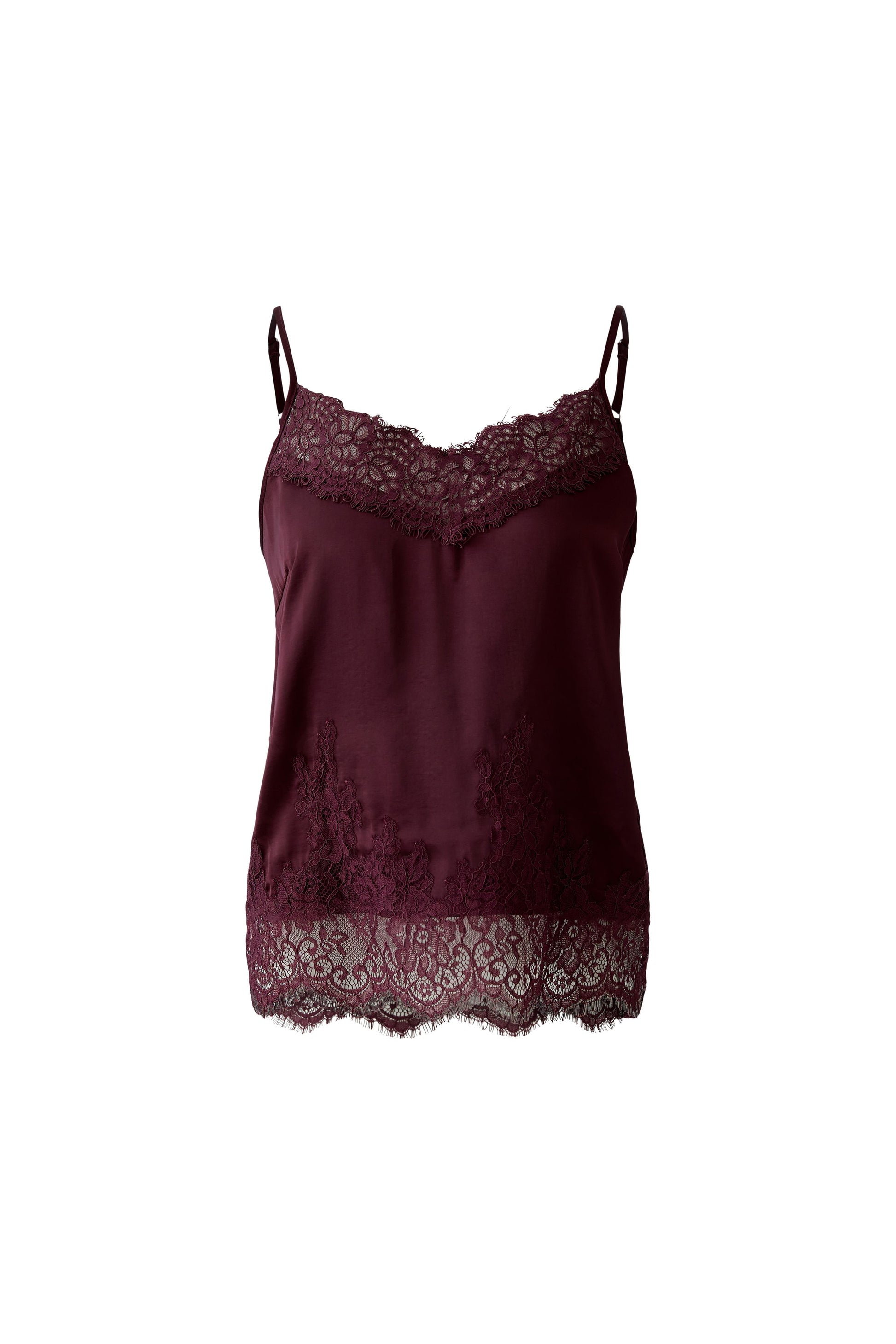 Satin top with decorative lace trim - perfect underlayer under a cropped pullover