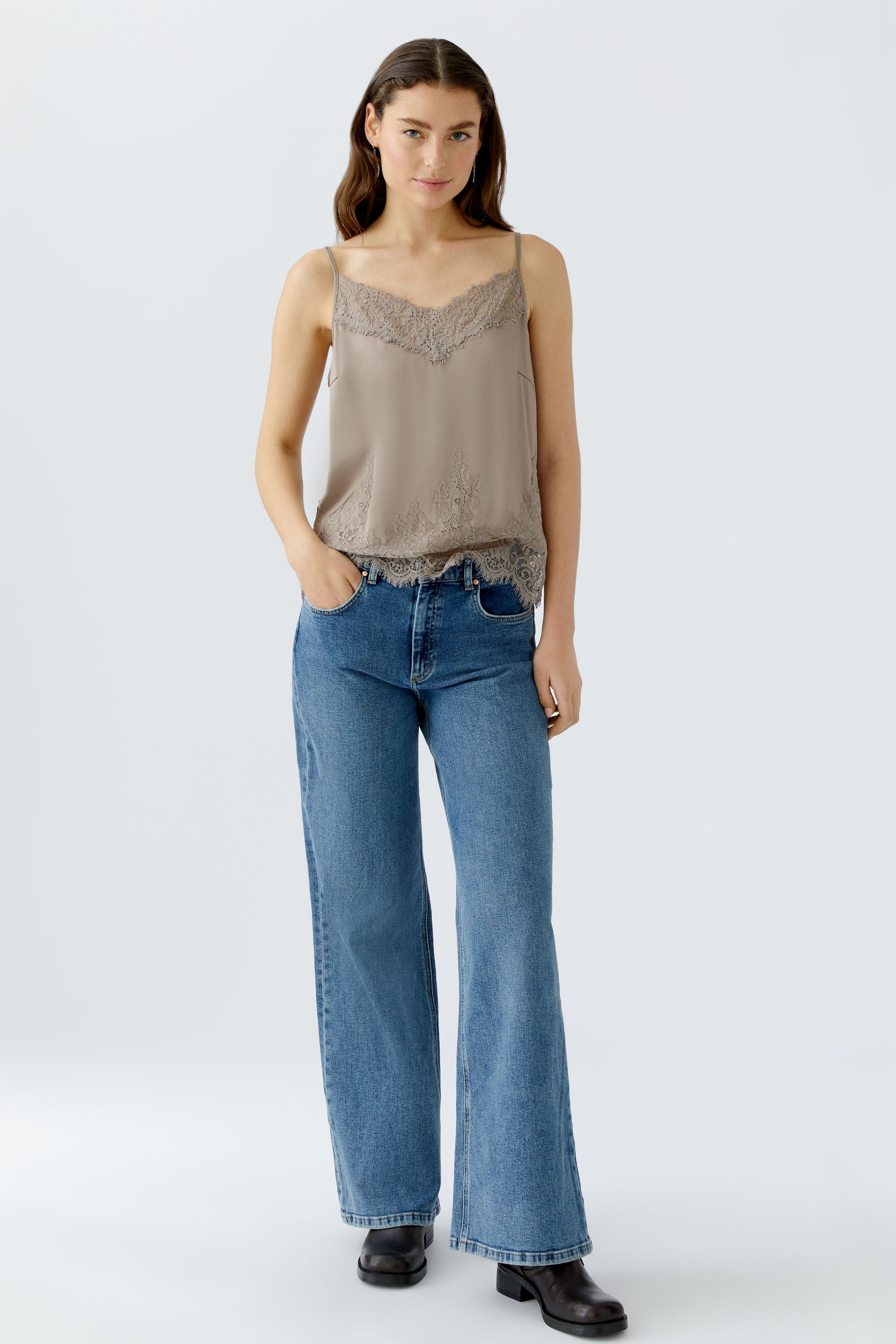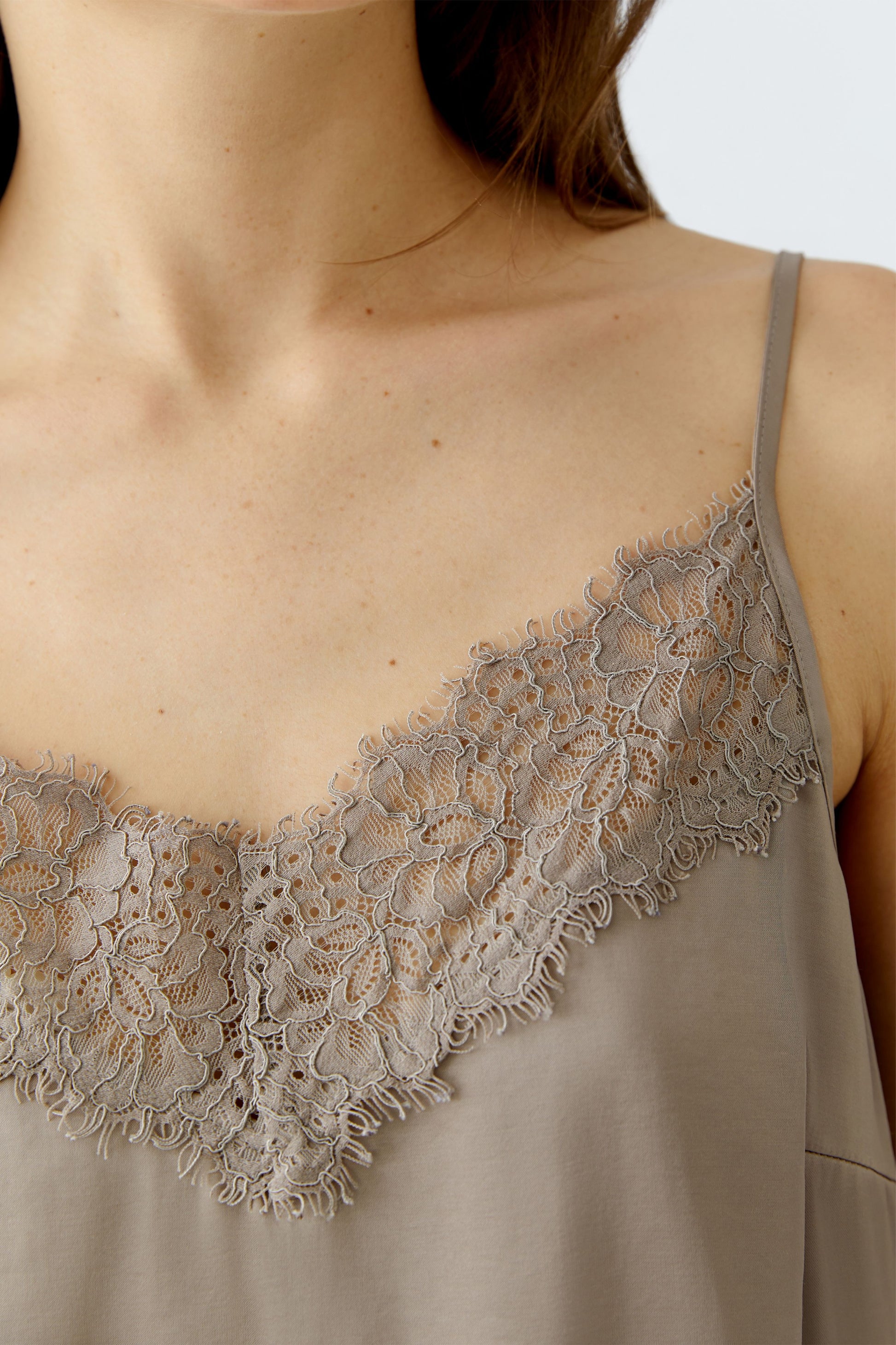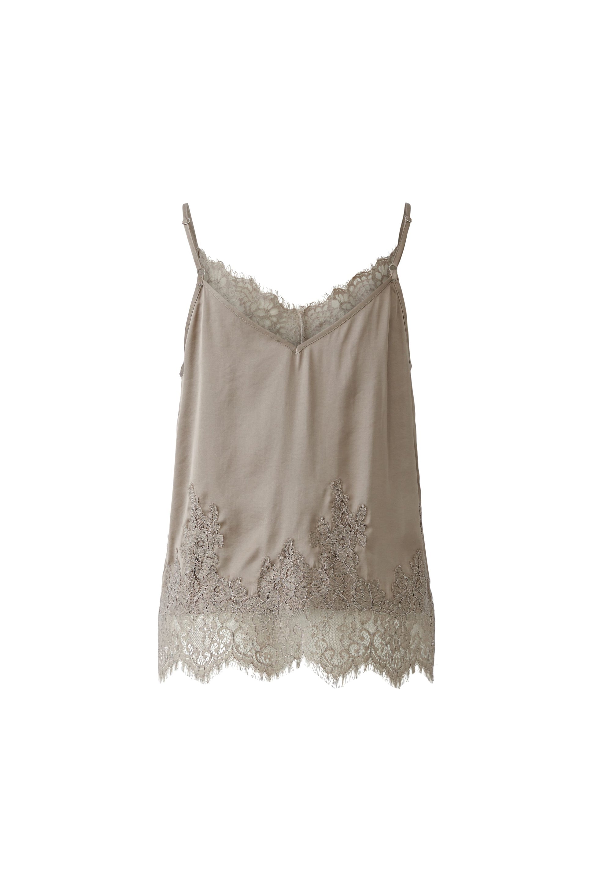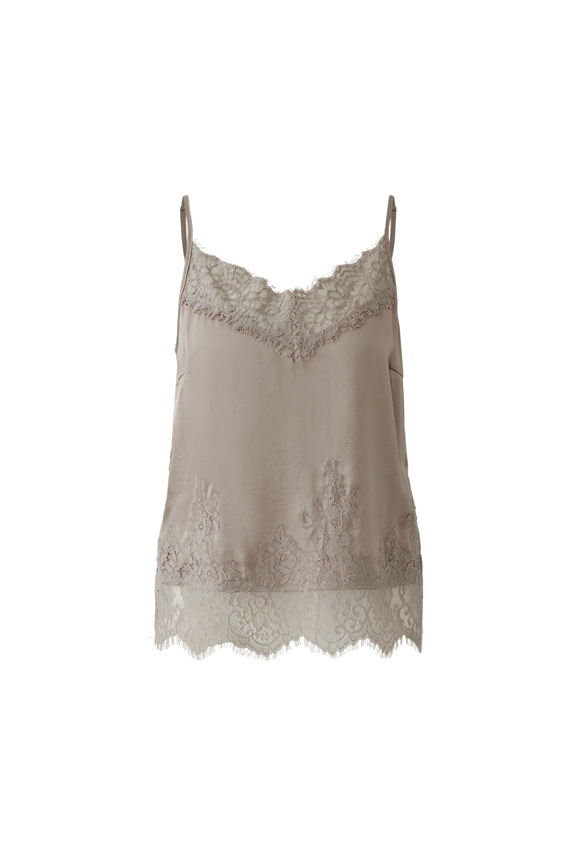 Satin top with decorative lace trim - perfect underlayer under a cropped pullover