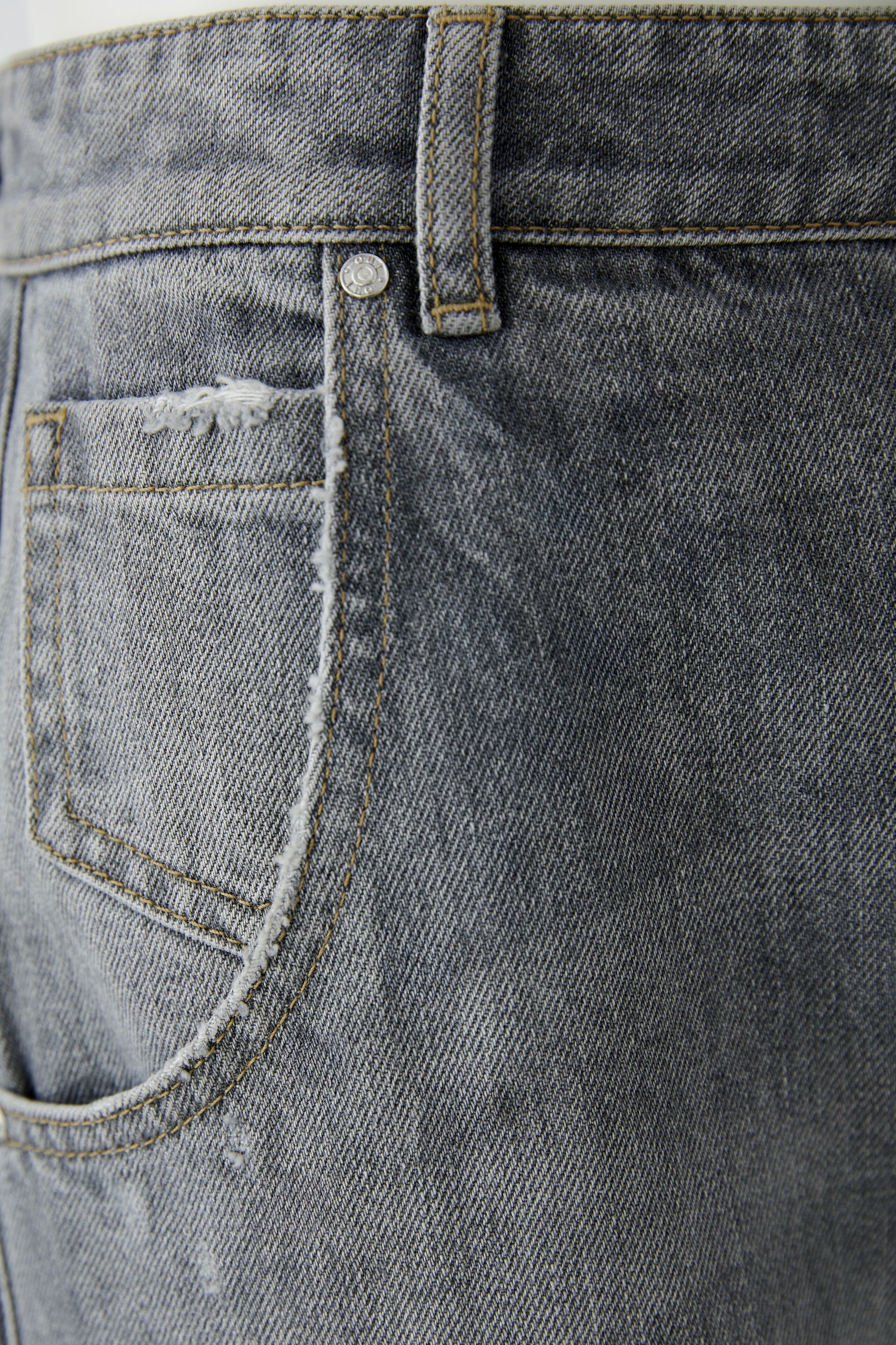 - Authentic grey denim with destroyed details