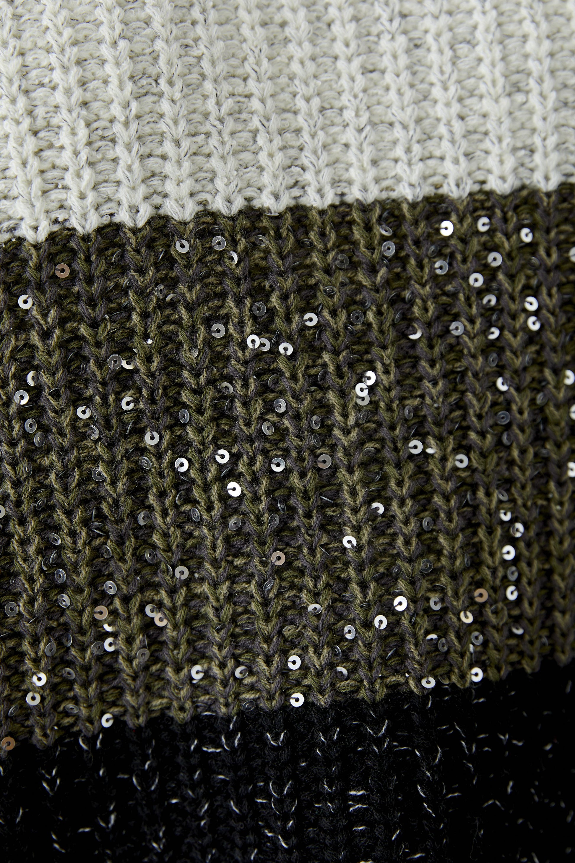 Oui Khaki/Rose Sequin/Metallic Striped Jumper