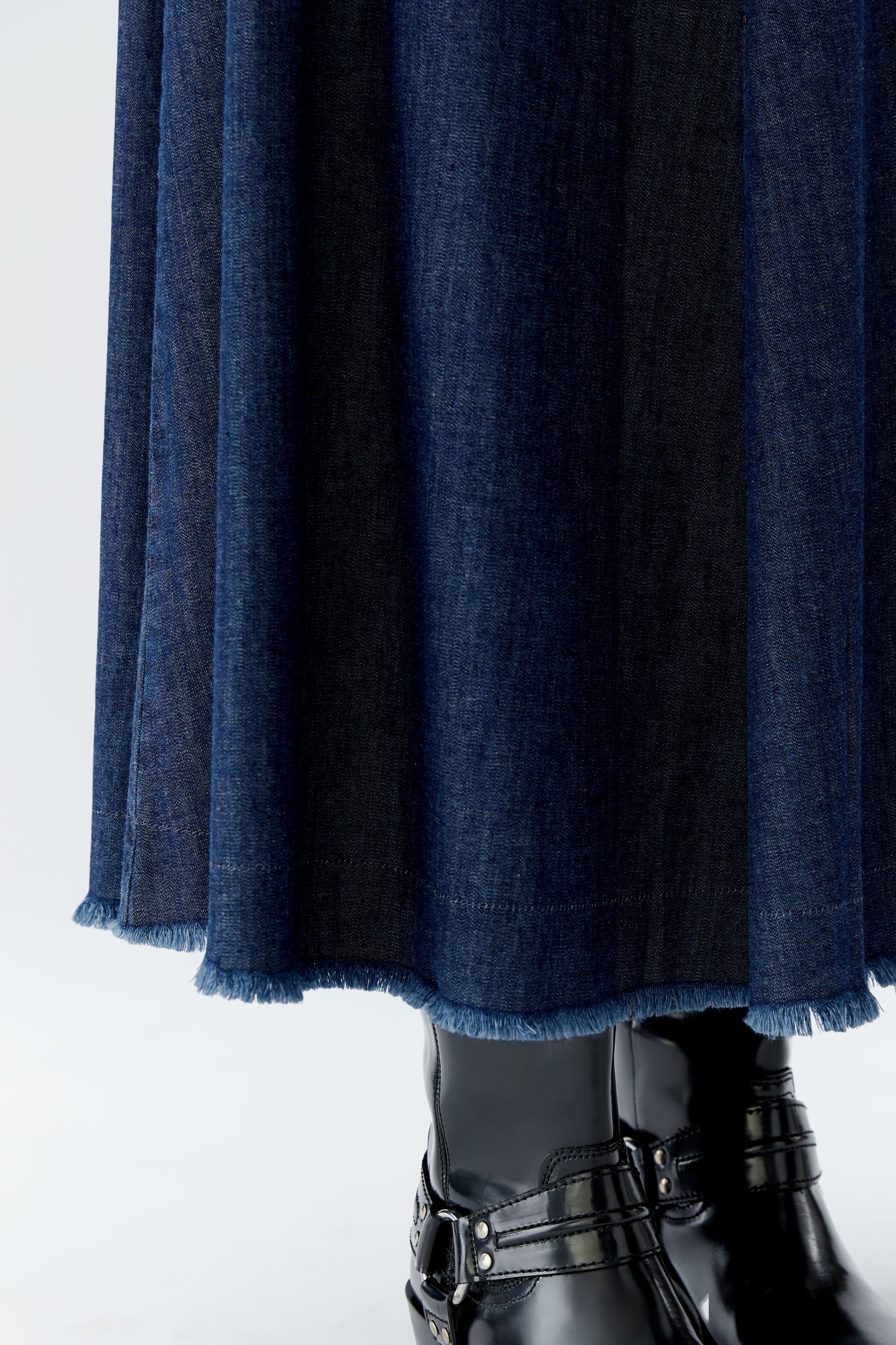 Denim skirt made from super lightweight denim in a modern maxi length with a soft swinging hem