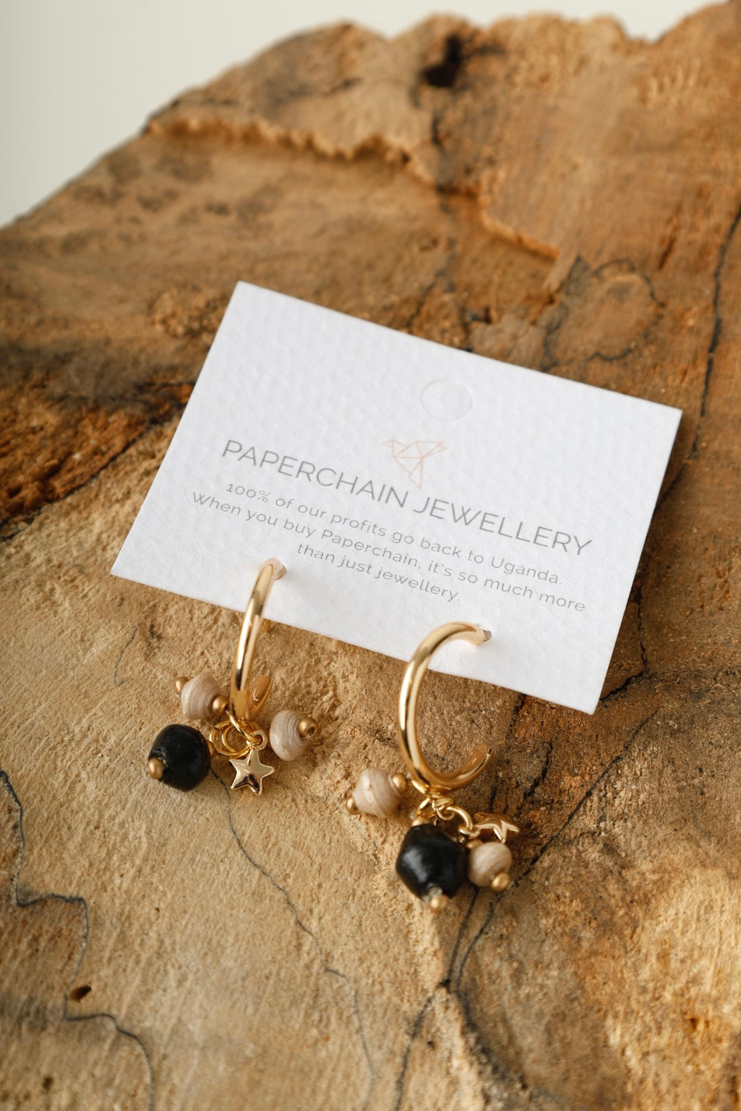 Paperchain Black/Cement Hanstar Hoop Earrings