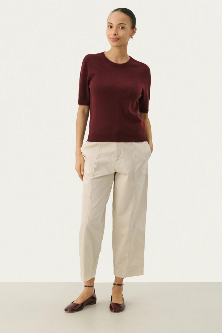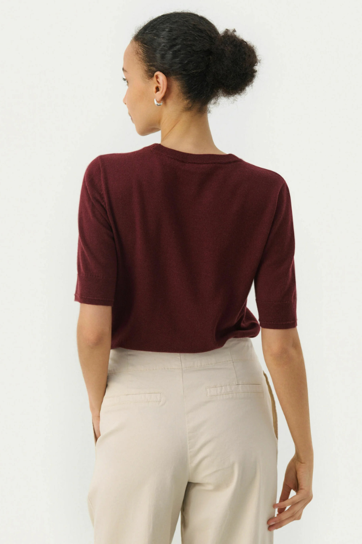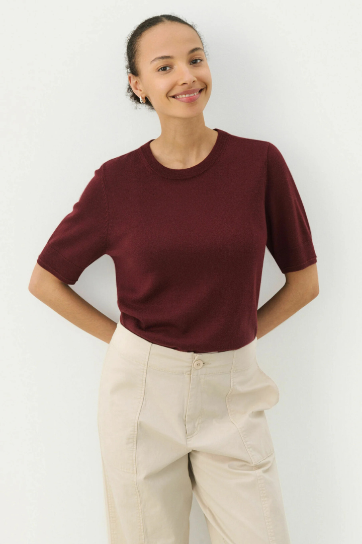 This short-sleeved knit is made from 100% wool and features a classic round neckline with neat ribbed trims. The clean silhouette makes it a timeless addition to your wardrobe – perfect on its own or layered under a blazer.