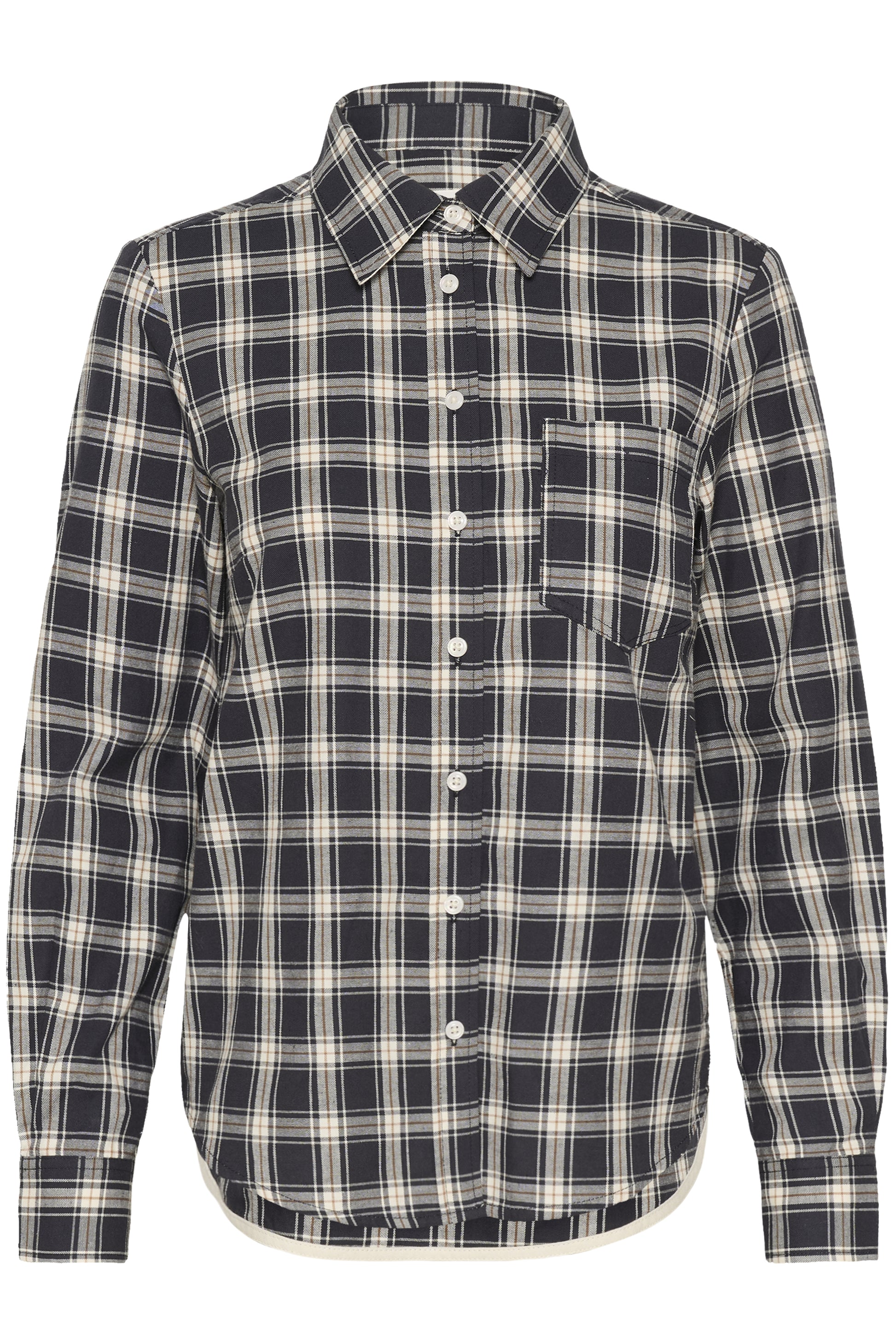 This checked shirt features a classic cut with a chest pocket, collar, and curved hem. Rolled-up sleeves with contrast lining add a relaxed touch. Wear it buttoned with jeans or open over a T-shirt for a more casual look.