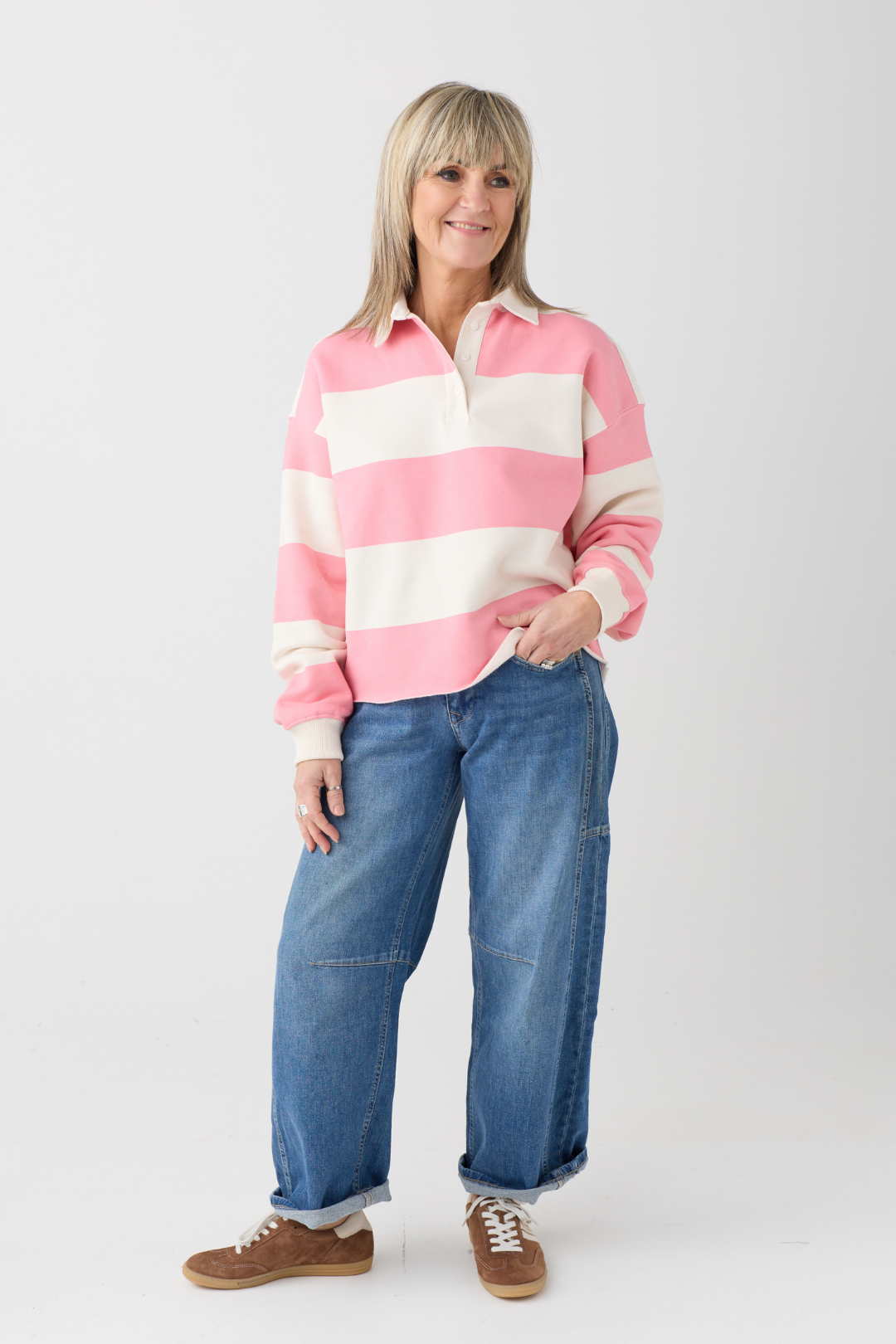TSP Ecru/Flamingo Stripe Polo Sweatshirt