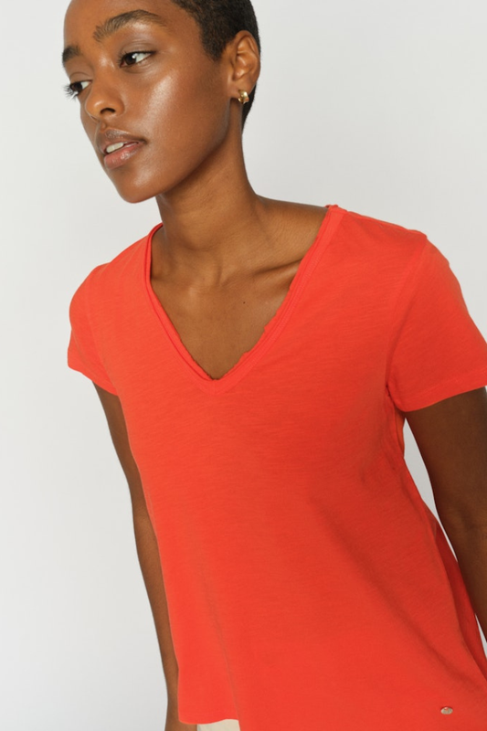 Mos Mosh Tulli Spicy Orange V-Neck T-Shirt
