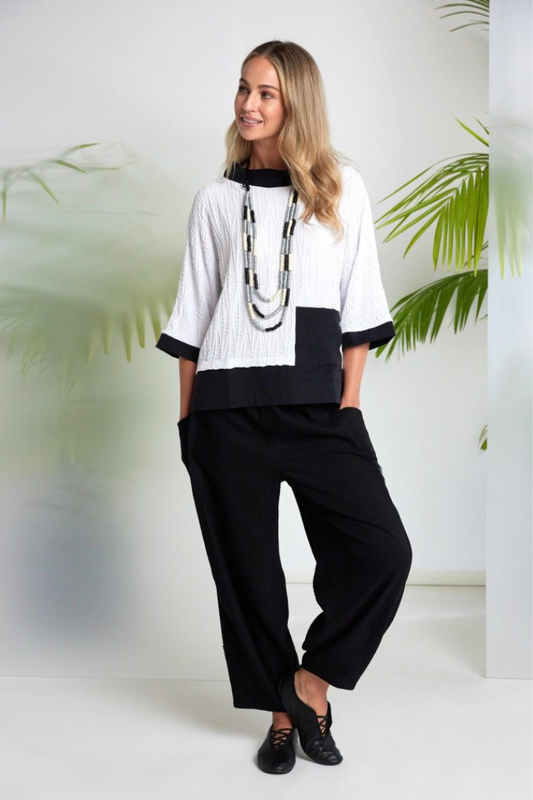 Naya White/Black Contrast Trim Top
